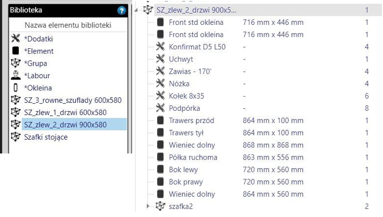 Możliwość zapisywania grupy formatek dla konkretnej szafki w celu późniejszego wykorzystania w innych projektach bez konieczności ponownego generowania lub ręcznego wprowadzania formatek.