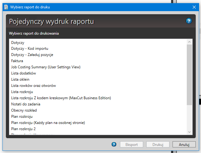 | Raporty i wydruki | ||||