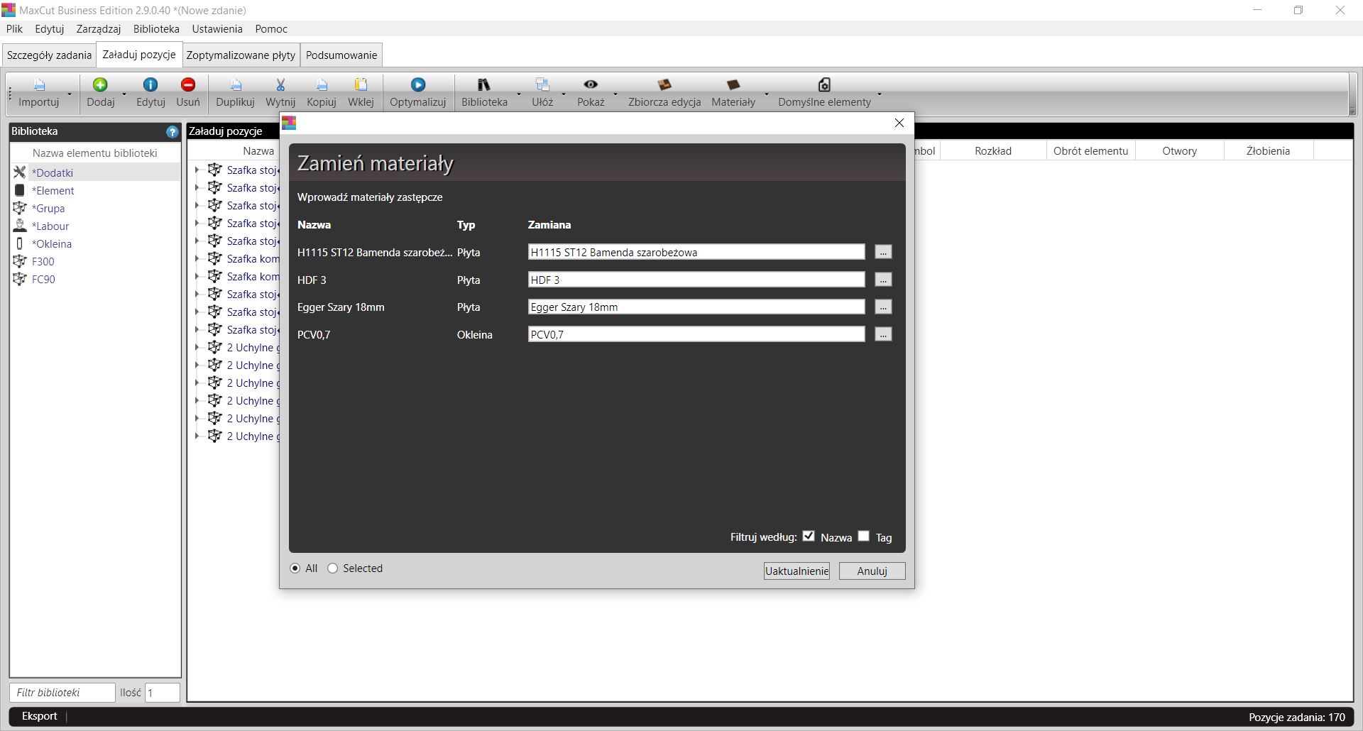 Grupowa zmiana materiałów jednym kliknięciem